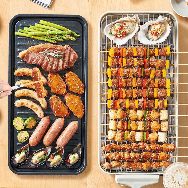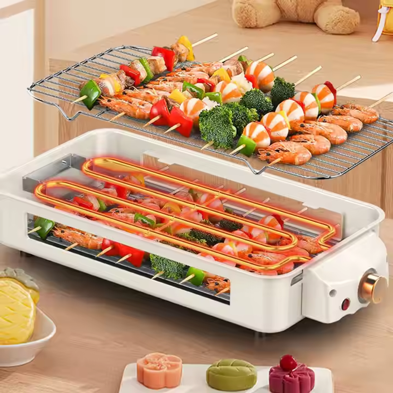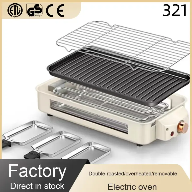 Forno elétrico multifuncional casa sem fumaça dupla camada grelhador elétrico prateleira para churrasco interior panela elétrica grelhador de carne
